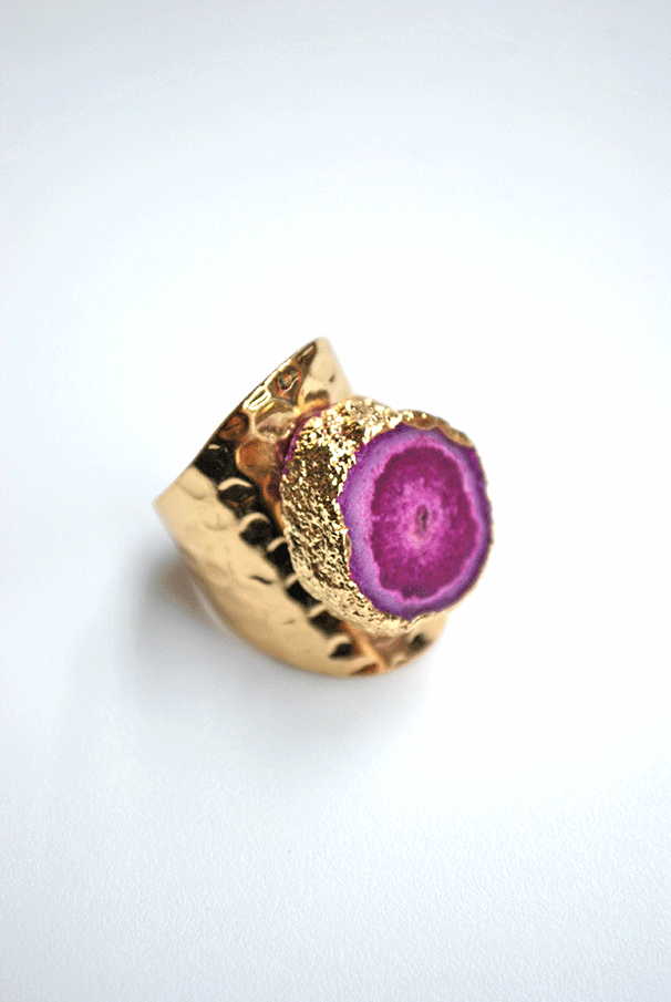 R03/5342 -R03/5342 – Precioso anillo chapado en oro. Se trata de un anillo ajustable decorado con una bonita piedra pulida en color bugamvilla.