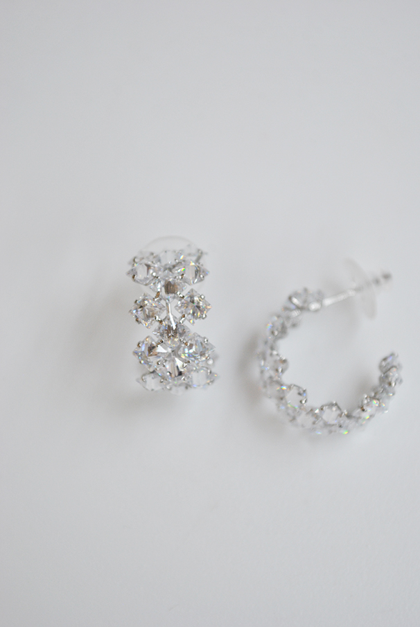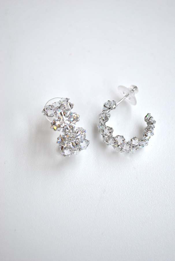 R03/5151 – Preciosos y elegantes pendientes pequeños de aro. Constan de cierre a presión y están decorados con llamativos cristales blancos, elegantes y super favorecedores.
