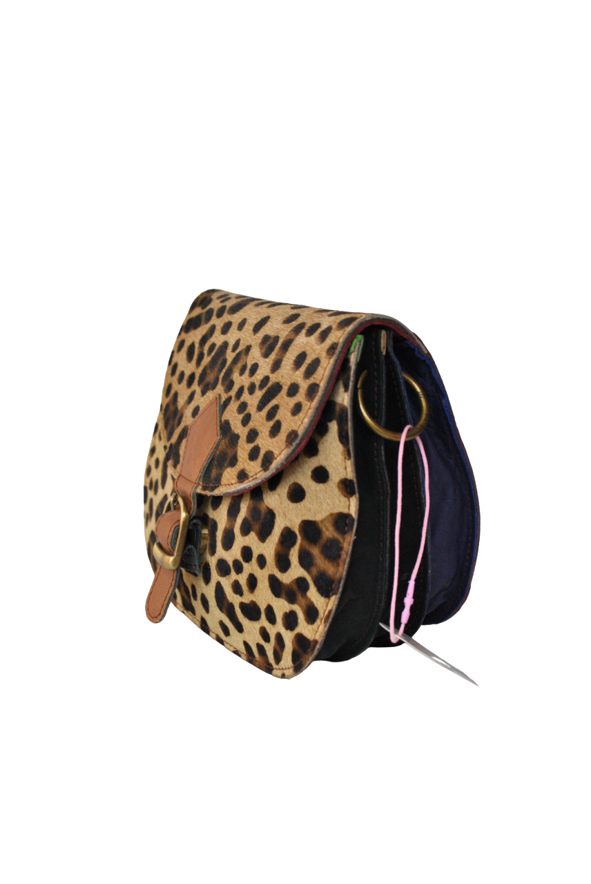 RDV099245883 – Precioso bolso bandolera de mujer. Se trata de un bolsito fabricado en piel italiana con fuelle de varios colores, parte trasera en color rojo y parte delantera decorado con pelo muy suave estampado de leopardo. Incluye correa para llevarlo ajustado al hombro.