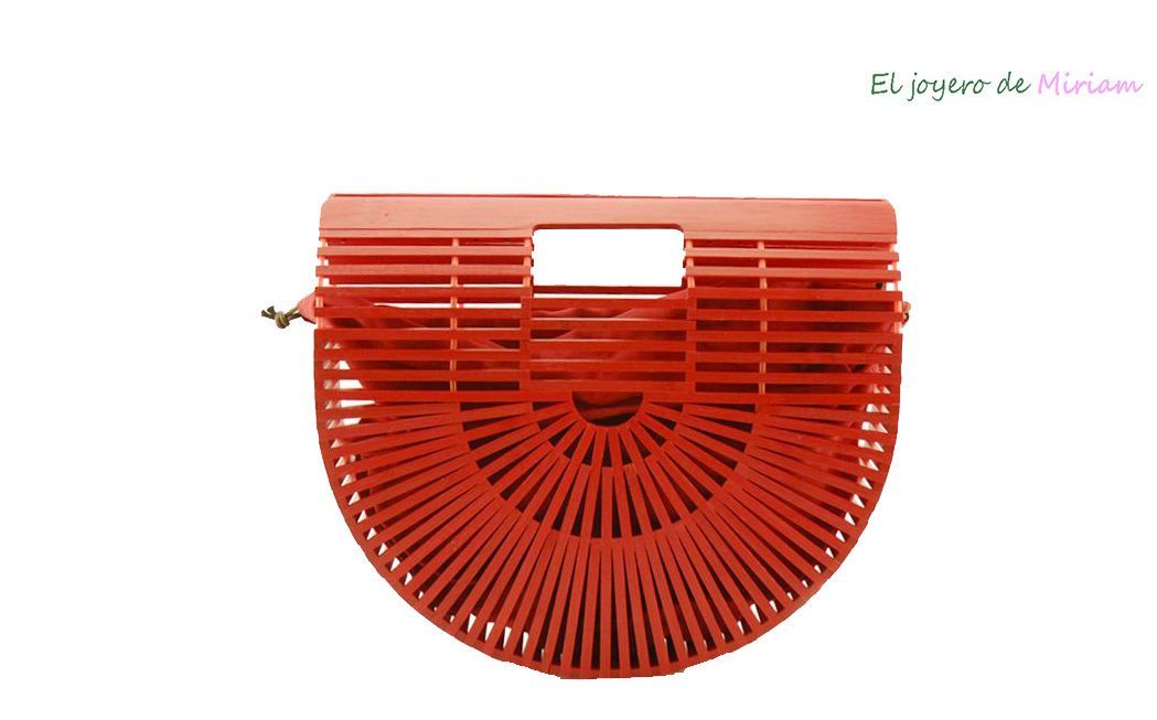 R19/2407 – Estiloso y original bolso de mano, tipo capazo, todo ello realizado en madera de bambú de color rojo. Presenta un coqueto asa, para llevarlo más cómodamente en la mano. Estamos seguras de que con este bolso de madera de bambú no pasarás desapercibida este verano.