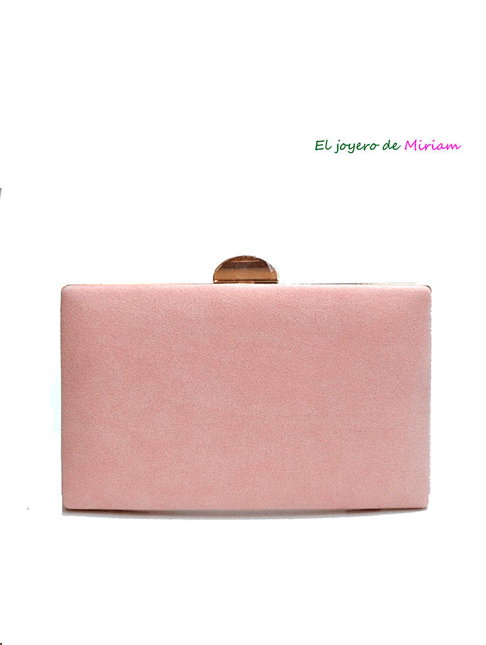 REF: 4997 – Elegante bolso clutch o cartera de fiesta de color ROSA NUDE (tono 70) fabricado en antelina, diseñado con forma rectangular. Lleva la montura y la cadena larga en dorado, detalle de cierre en forma de media luna, cómodo y original.