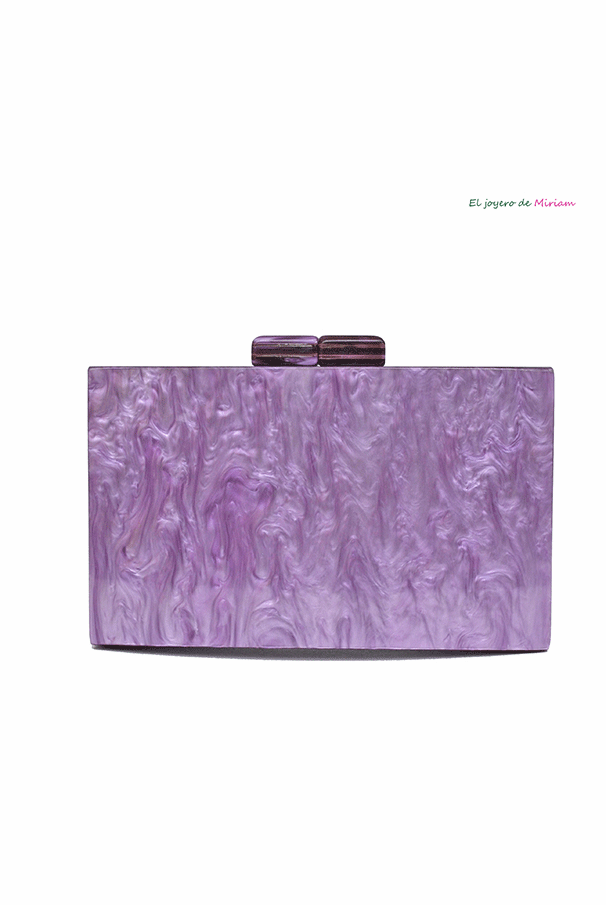 R03/5251 – Bonito y elegante bolso de fiesta clutch lila. Se trata de un bolso diseñado en forma de cajita y, fabricado en carey sintético de color lila. El cierre es de imán y, lo puedes llevar cómodamente colgado gracias a la codena dorada que consta en el interior.