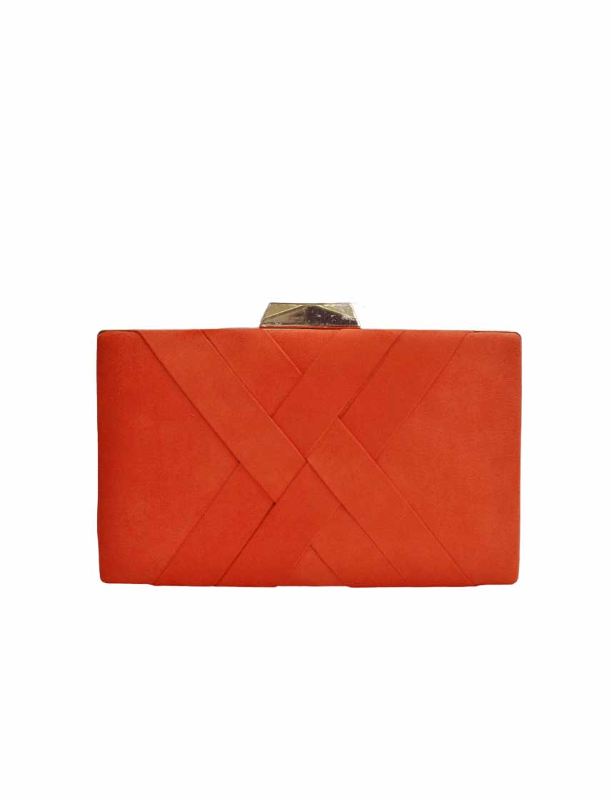 R04/5623 – Original y elegante cartera de fiesta, bolso clutch de color NARANJA. Se trata de un bolso rectangular, con cadena corta de metal ligero dorado. Muy llamativo, ya que presenta un ligero trenzado en el frente, ideal para lucirlo en tus looks diarios o bien, con tu vestido de fiesta.