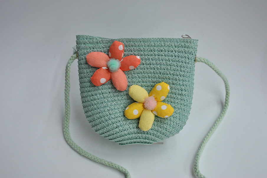 R03/5318 – Original bolsito infantil. Se trata de un bolso bandolera diseñado en forma de capazo decorado con flores y con una cremallera.