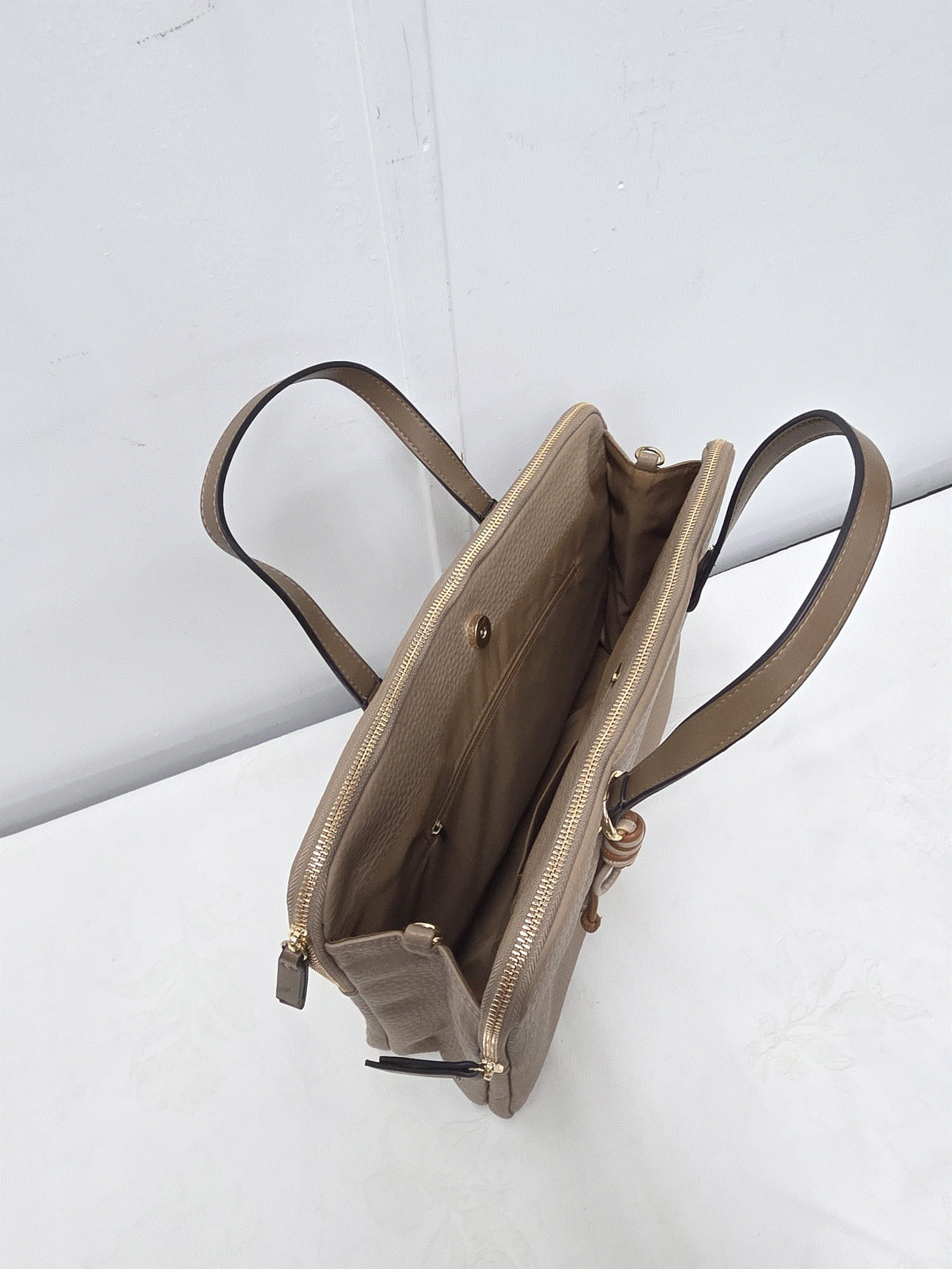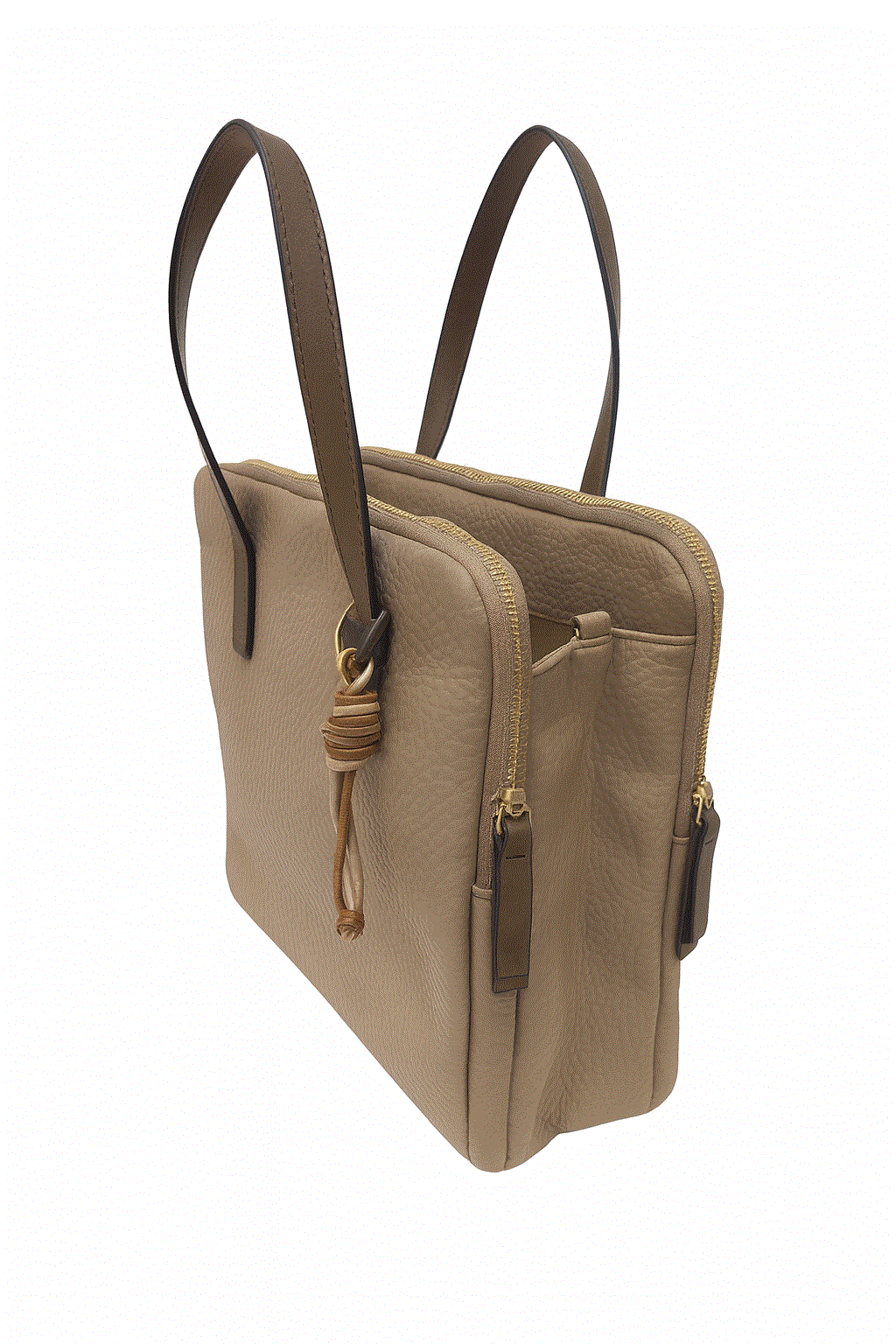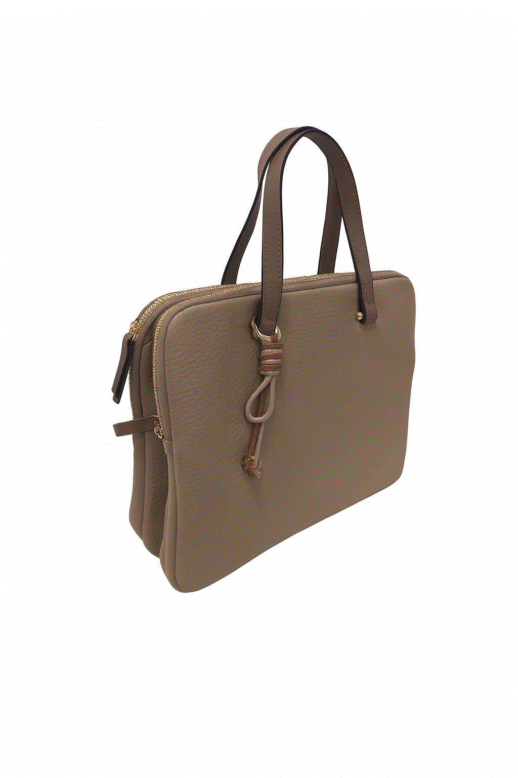 REF: 21407 – Bolso portadocumentos o bolso para ordenador portátil que combina estilo y practicidad en un diseño sofisticado y funcional. Confeccionado en piel sintética texturizada en tono beige muy suave, cuenta con dos compartimentos principales con cierre de cremallera dorada que brindan seguridad y organización, además de bolsillos internos ideales para documentos, dispositivos electrónicos o accesorios personales. Sus asas en color marrón oscuro aportan contraste y resistencia, mientras que el adorno lateral en forma de cordón con nudos le da un toque distintivo y moderno. Perfecto para uso ejecutivo, reuniones de trabajo o estudios, este maletín es la opción ideal para quienes buscan proyectar profesionalismo y buen gusto en su día a día.