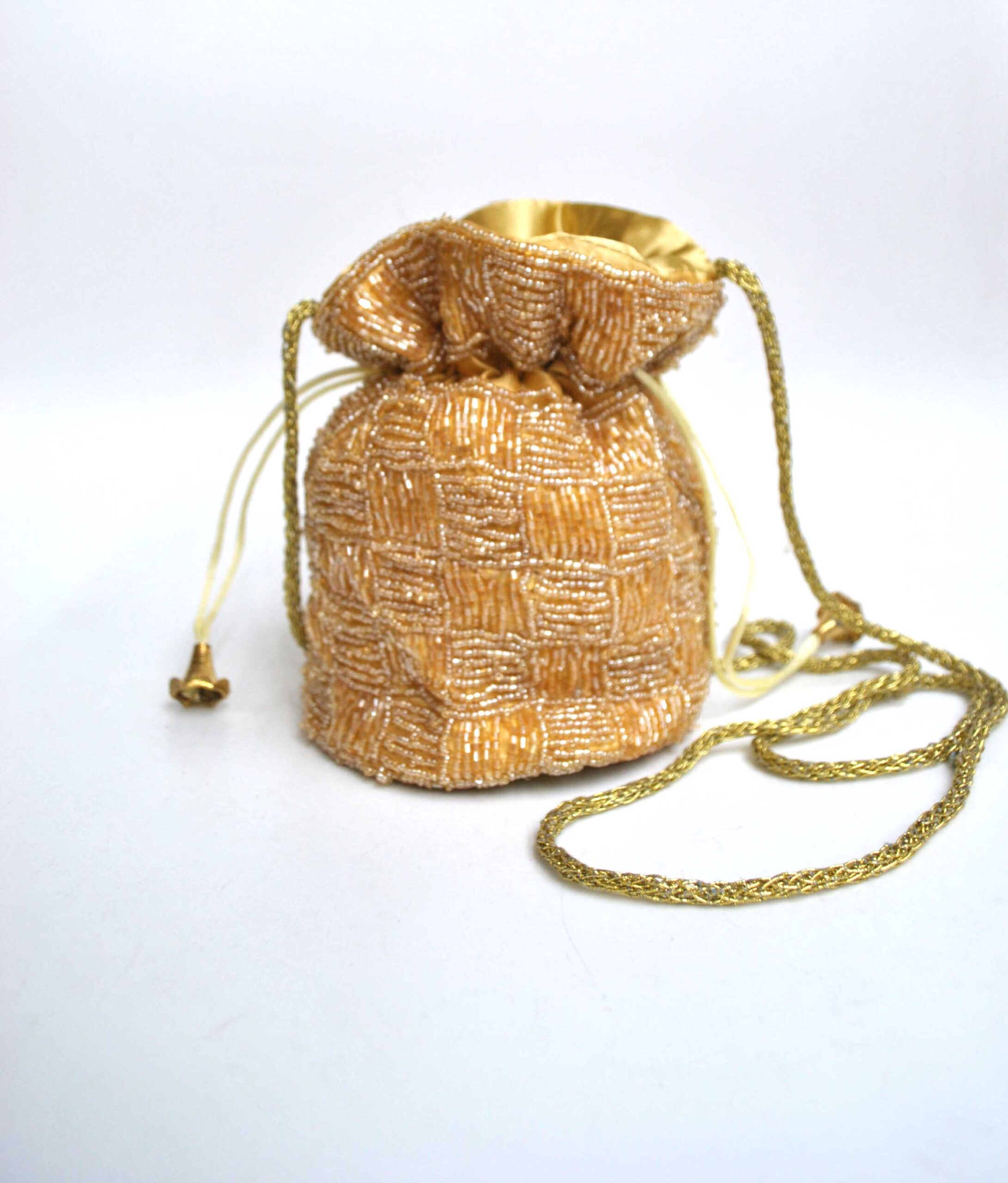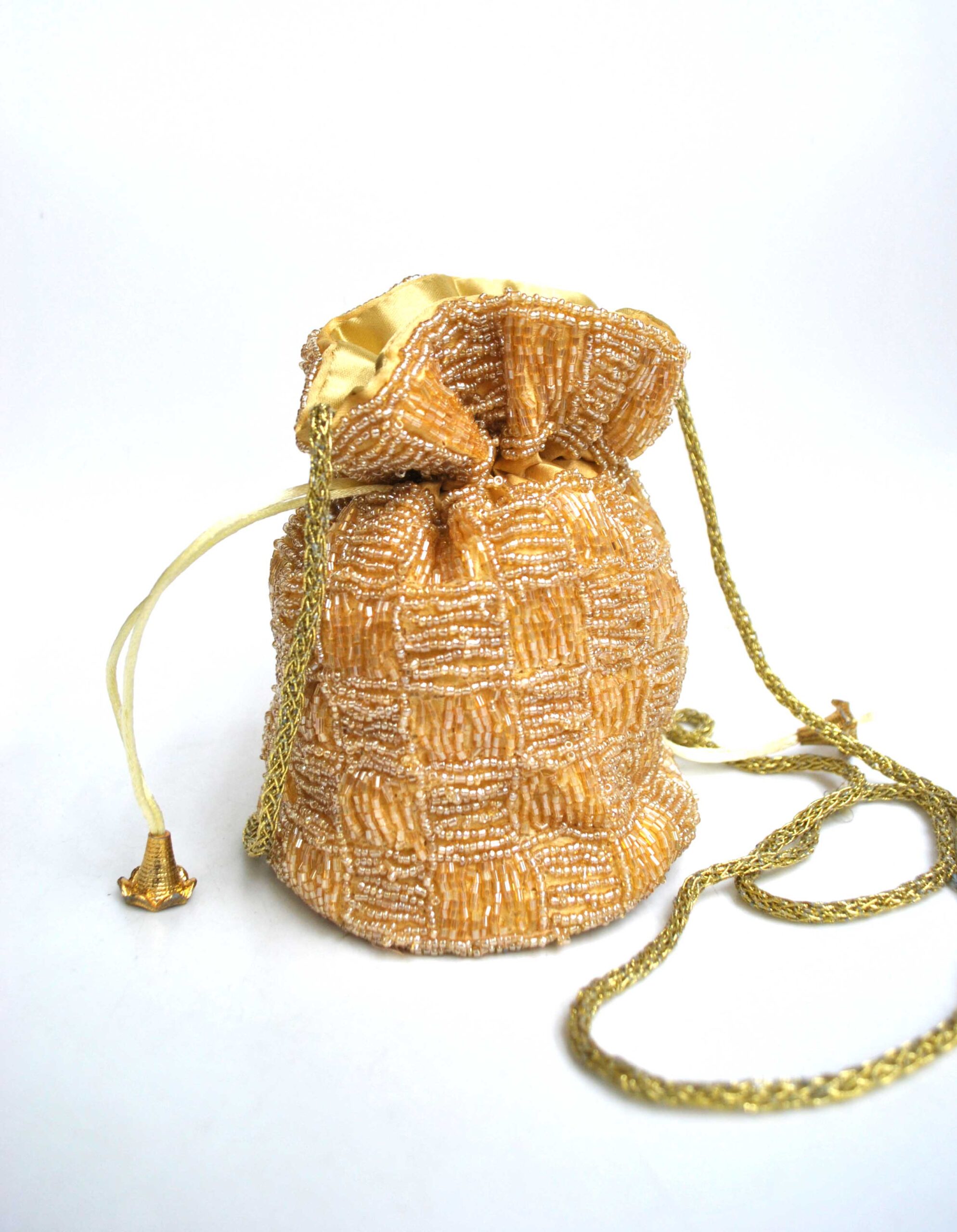 R04/5583 – Glamuroso bolso de fiesta, clutch o bolso bombonera de color dorado con bordados a mano de cuentas brillantes. Un bolso original y con un estilo diferente para completar tu vestido de fiesta o tus looks diarios