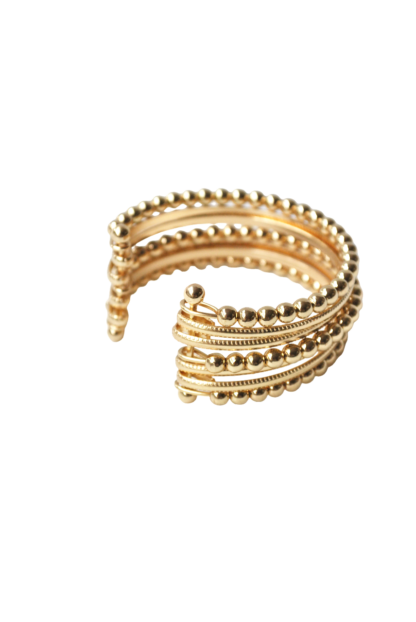 VV092455807 – Bonita pulsera de fiesta o brazalete dorado. Se trata de un brazalete fabricado en bisutería dorada ligera, con varias vueltas y con bolas y pulseras rígidas doradas.