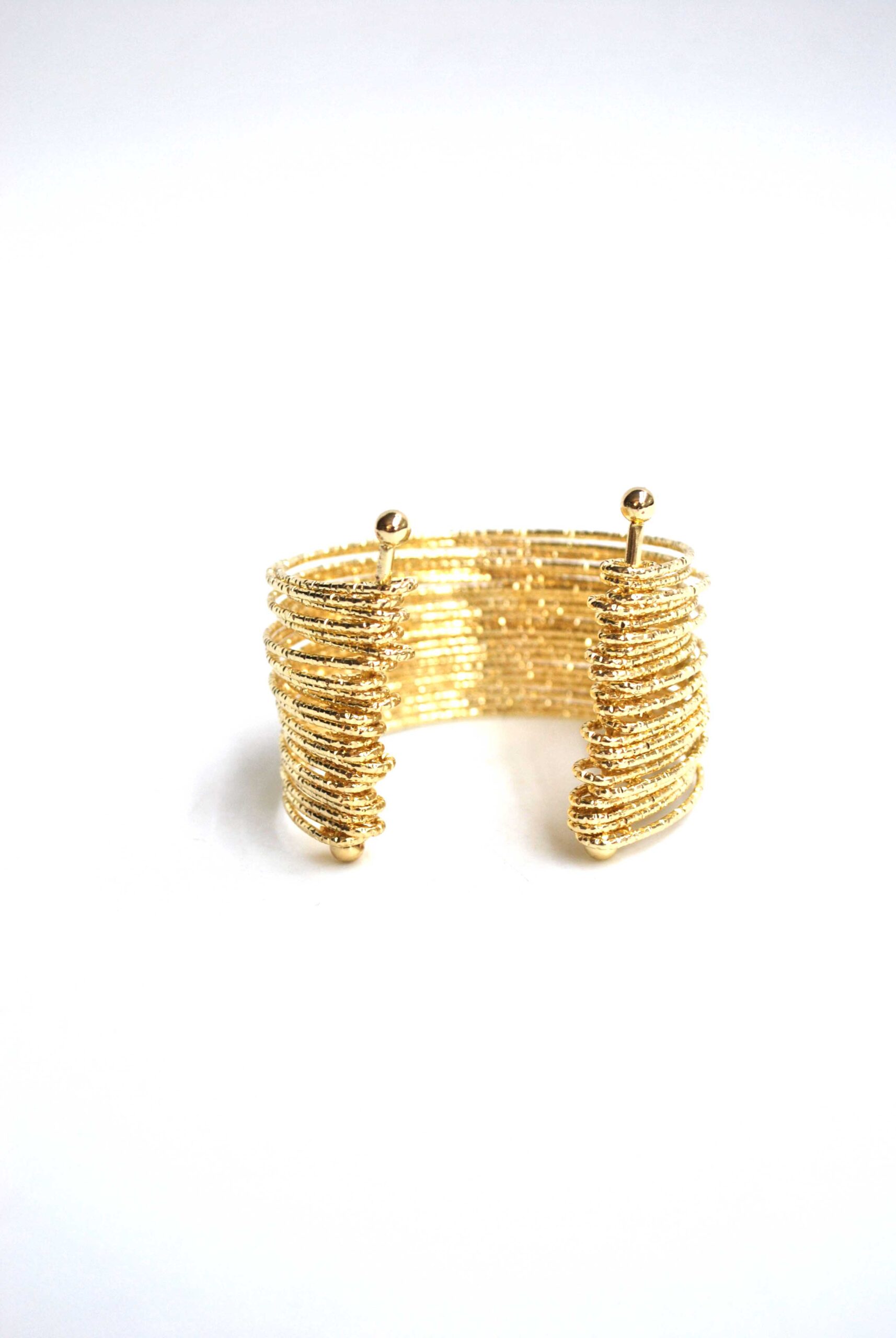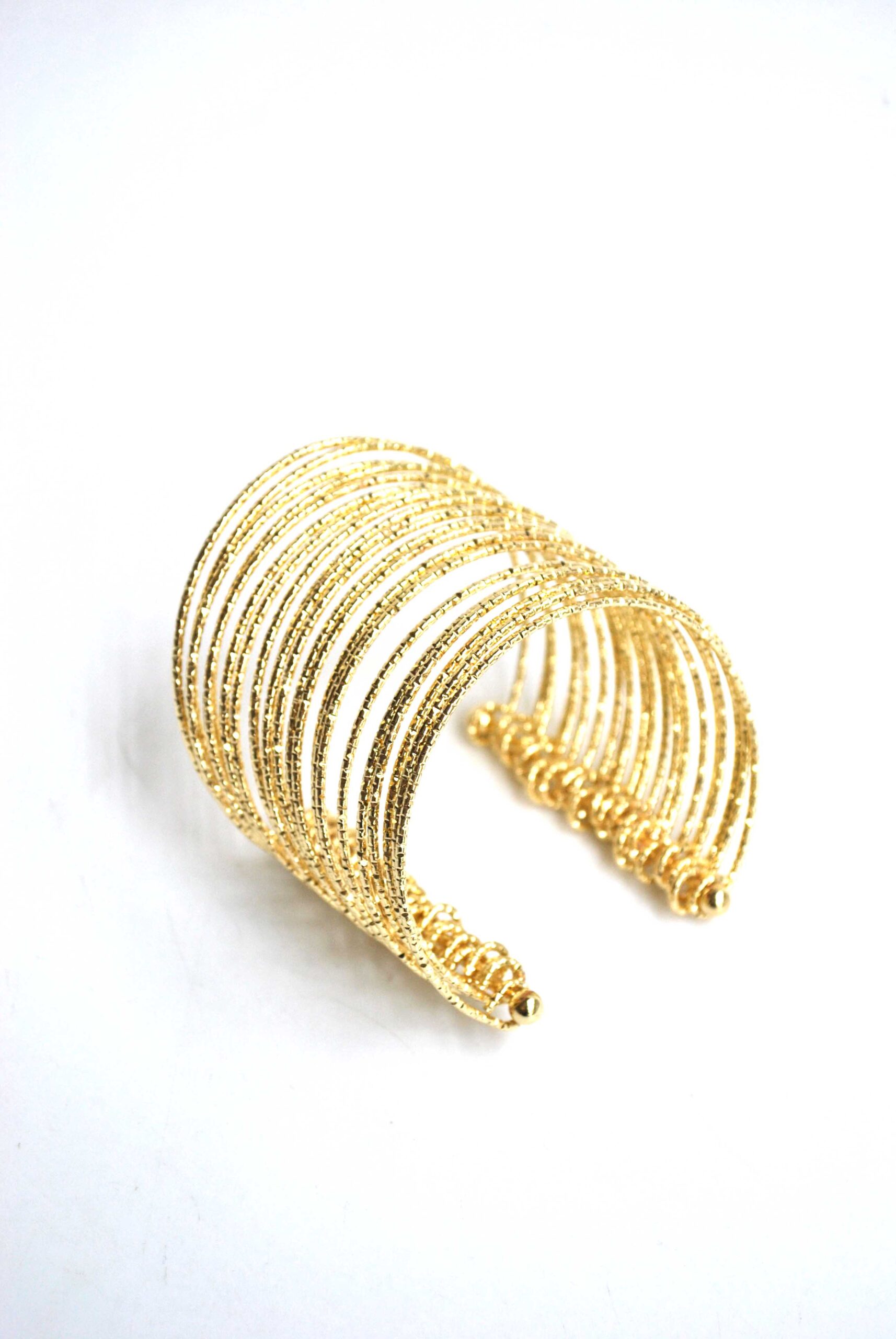 REF: 5809 – Preciosa pulsera de fiesta o brazalete grande dorado. Se trata de un brazalete fabricado en metal ligero dorado y decorado con multitud de cadenetas que se ajustan perfectamente a la muñeca.