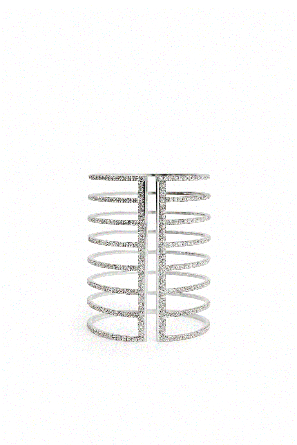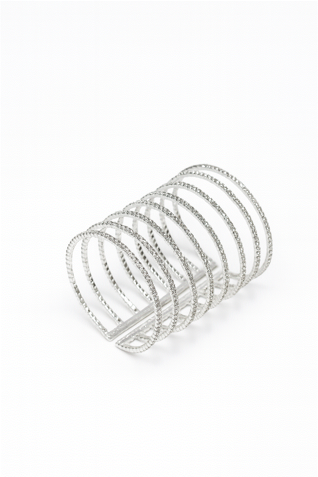 REF: 0325 – Pulsera plateada o brazalete elegante con diseño moderno de múltiples hileras paralelas, adornada con delicadas circonitas blancas incrustadas, con un brillo y elegancia espectacular. Su acabado en tono dorado realza la luminosidad de las piedras, creando un accesorio sofisticado y versátil ideal para bodas, fiestas, cenas de gala o para elevar cualquier look cotidiano.