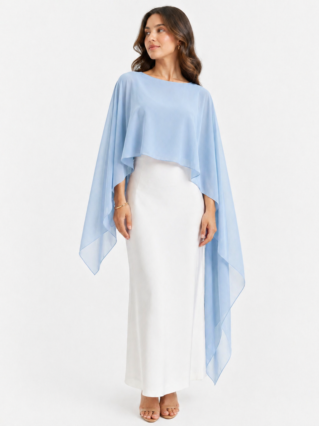 PB- 00186 – Preciosa capa de gasa multiposición de color azul celéste y con tacto seda que destaca por su diseño exclusivo y alta calidad. Nuestra gasa, un tejido delicado y fluido, añade un toque etéreo y sofisticado a cualquier look de invitada, ceremonias como bodas, fiestas o eventos especiales.