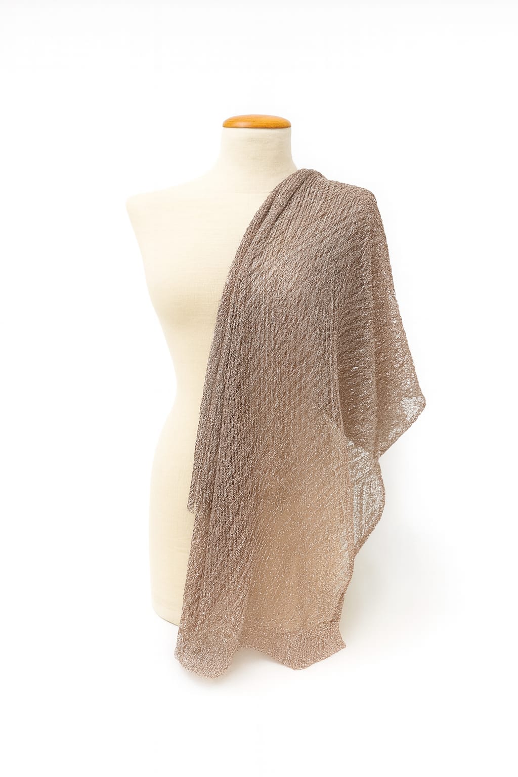 REF: 3087 – Elegante chal de malla en tono oro rosa con sutil acabado brillante es el complemento ideal para añadir un toque de elegancia y distinción a tu look. Su tejido ligero y vaporoso lo hace perfecto para usar en cualquier temporada, aportando comodidad sin perder estilo. Con un diseño moderno y versátil, puede llevarse tanto en eventos formales como en salidas casuales.
