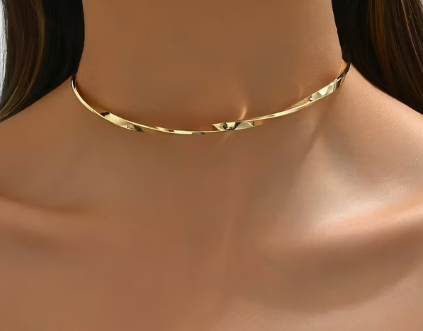 REF: 9558 – Bonita gargantilla choker de diseño minimalista fabricada en acero inoxidable dorado.
