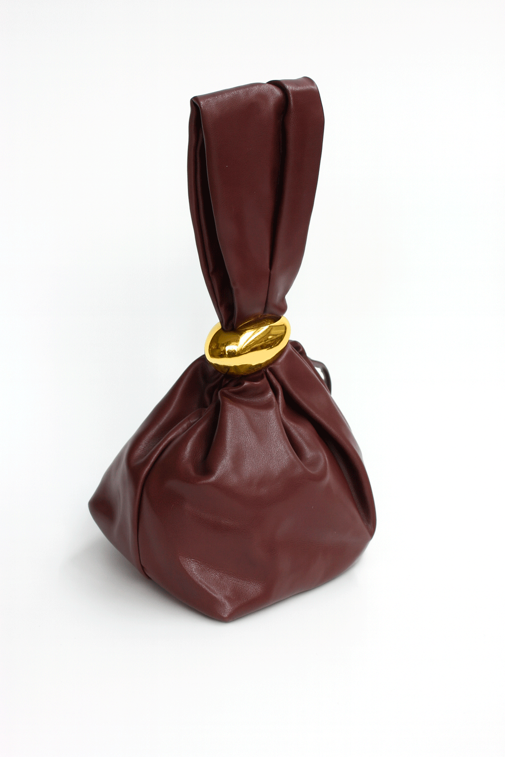 REF: 21414 – Precioso bolso de fiesta o clutch color granate o burdeos. Se trata de un bolso diseñado en forma de saco y confeccionado en piel sintética con tejido muy suave en color burdeos. Destaca una aplicación dorada metálica, aportando originalidad y elegancia al diseño. Luce como la invitada perfecta o combínalo con tus looks más casuales marcando tendencia.