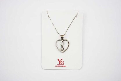 R18/847 – Precioso colgante de mujer fabricado en Plata de Ley de 925 engastado con circonitas, y baño de rodio. Se trata de un conjunto formado por cadena y motivo con forma de corazón y el símbolo del infinito en medio del mismo.