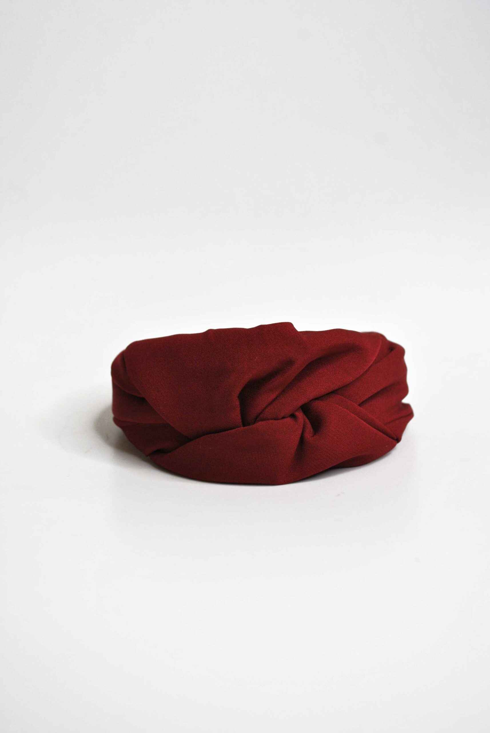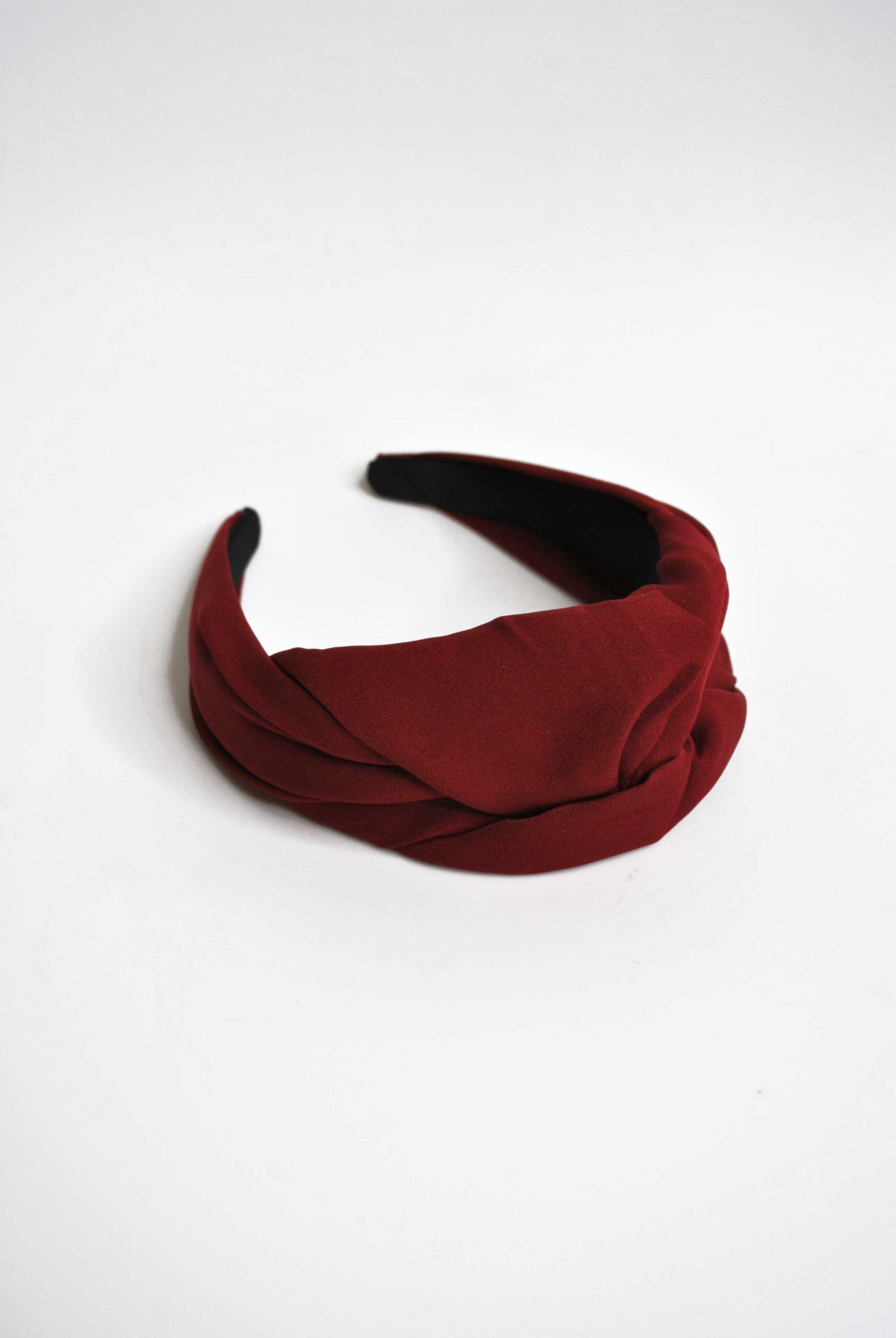 R04/5725 – Bonita diadema de fiesta color rojo burdeos. Se trata de una diadema forrada en tela con detalle central con un nudo. ¡Queda espectacular!