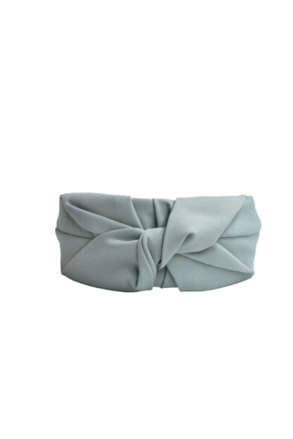 R04/5571 – Bonita diadema forrada en tela suave de color gris con detalle central de un nudo, diseño fino y elegante