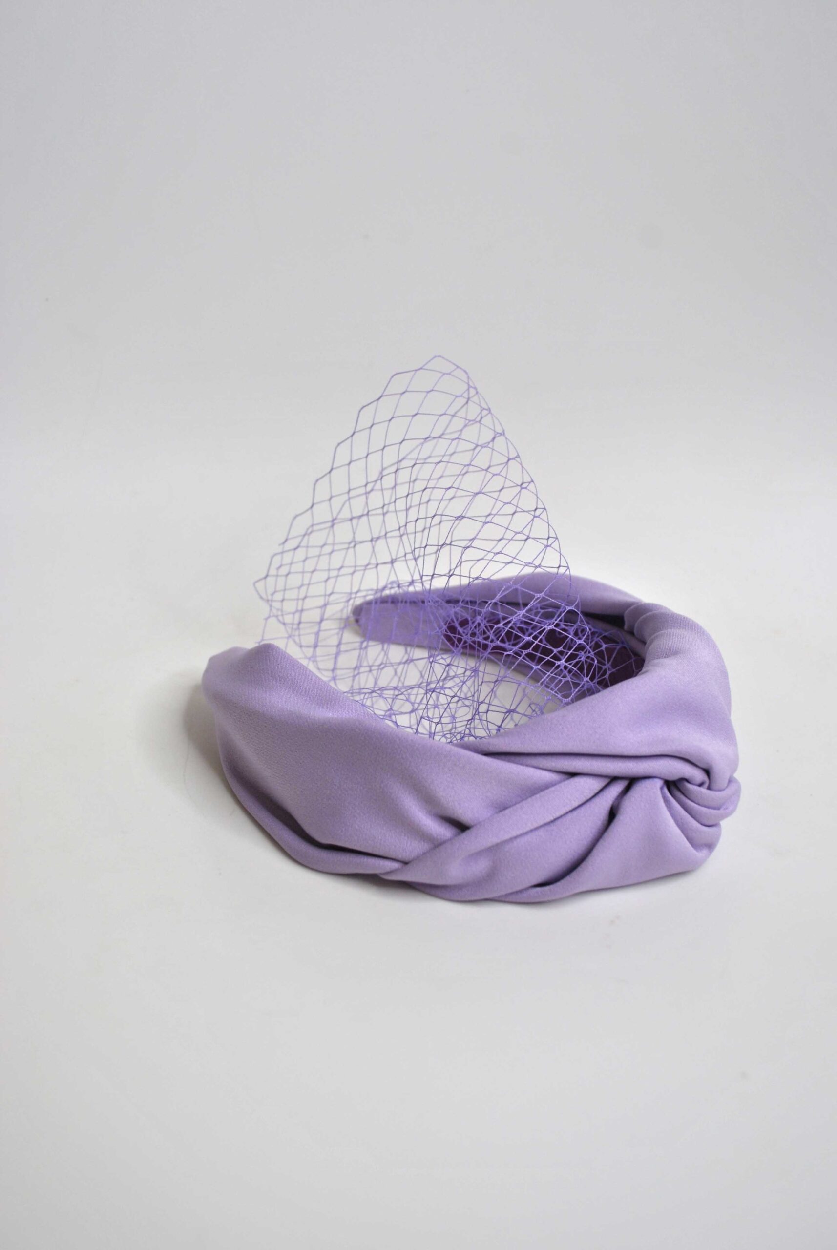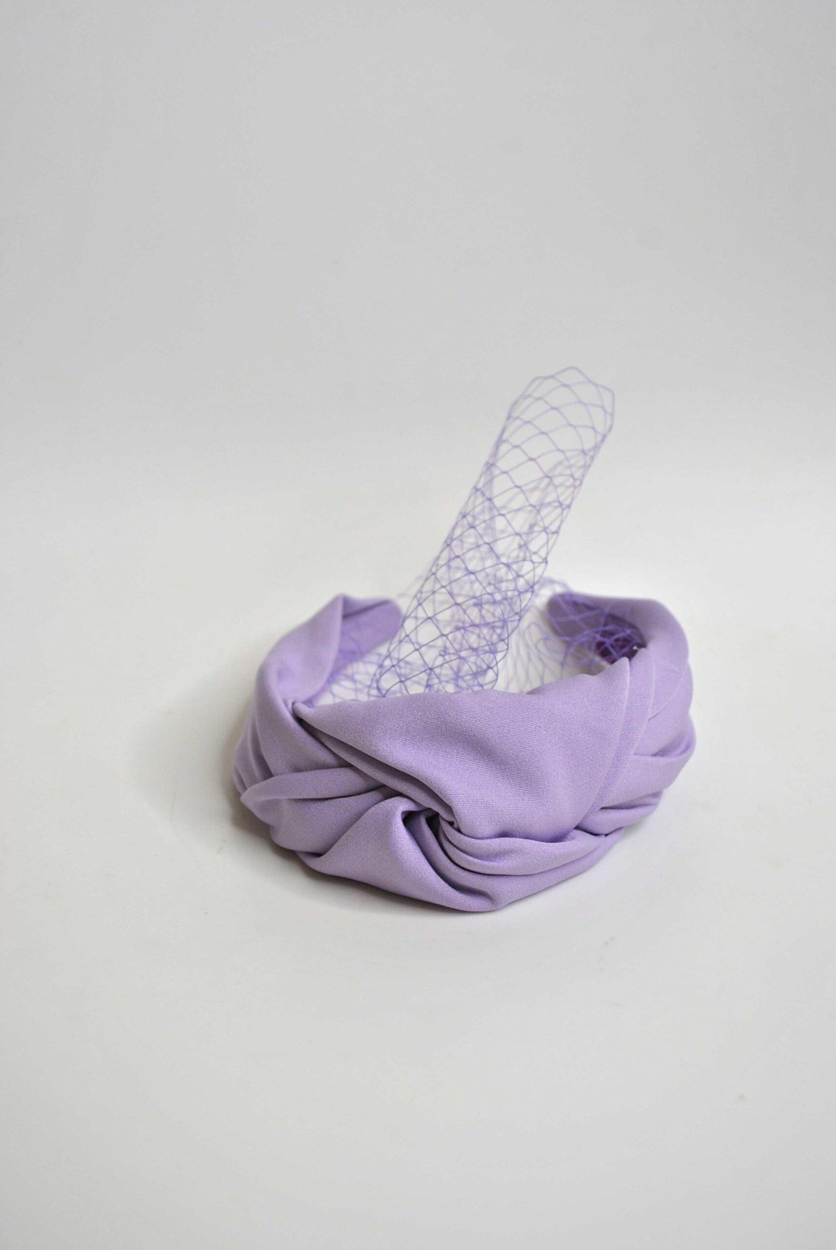 REF: 78889 – Preciosa diadema de fiesta o tocado en tono malva. Se trata de una diadema forrada en tela con una elegante redecilla y detalle central de un nudo.