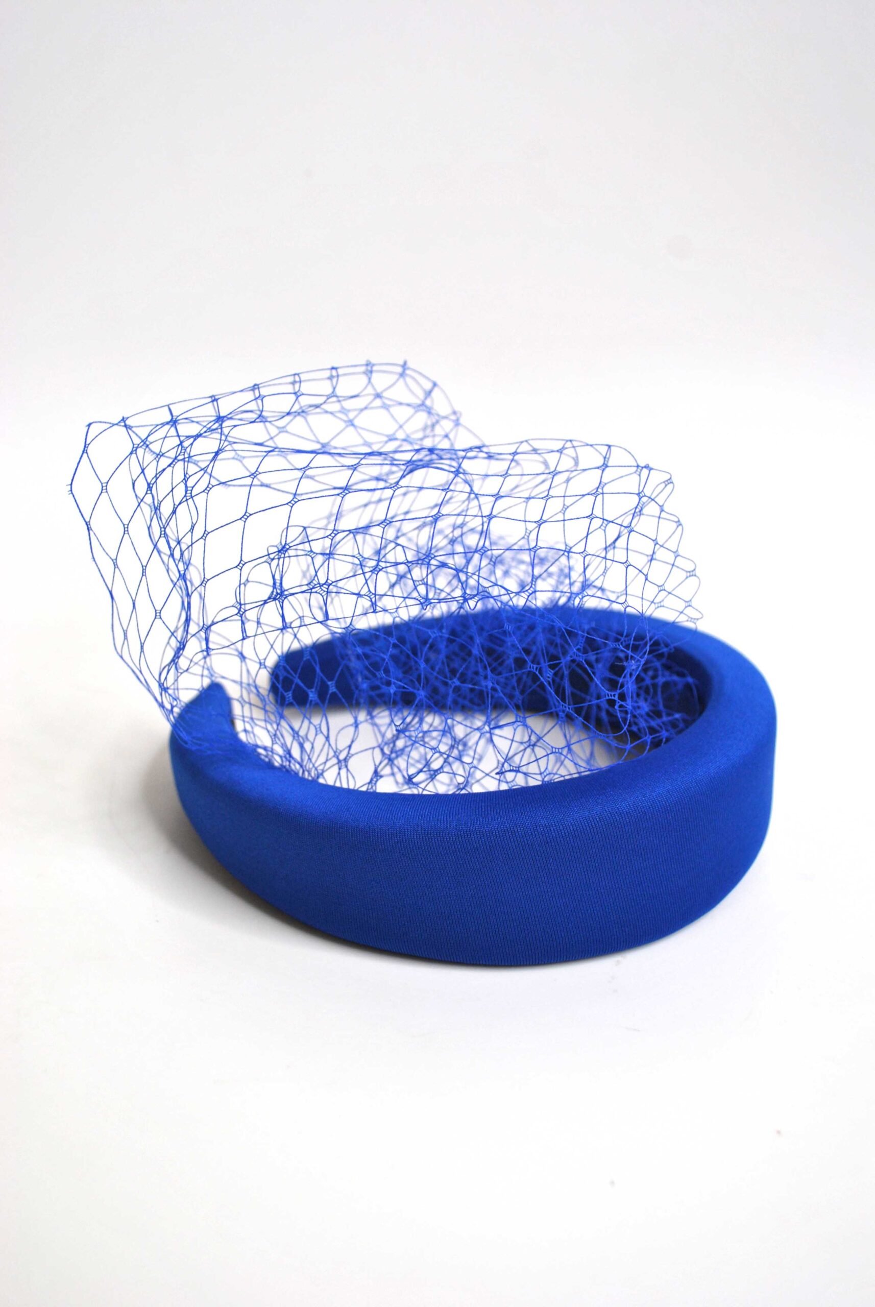 REF: 78889 – Preciosa diadema de fiesta o tocado en azul klein o azul eléctrico. Se trata de una diadema forrada en tela con una elegante redecilla.