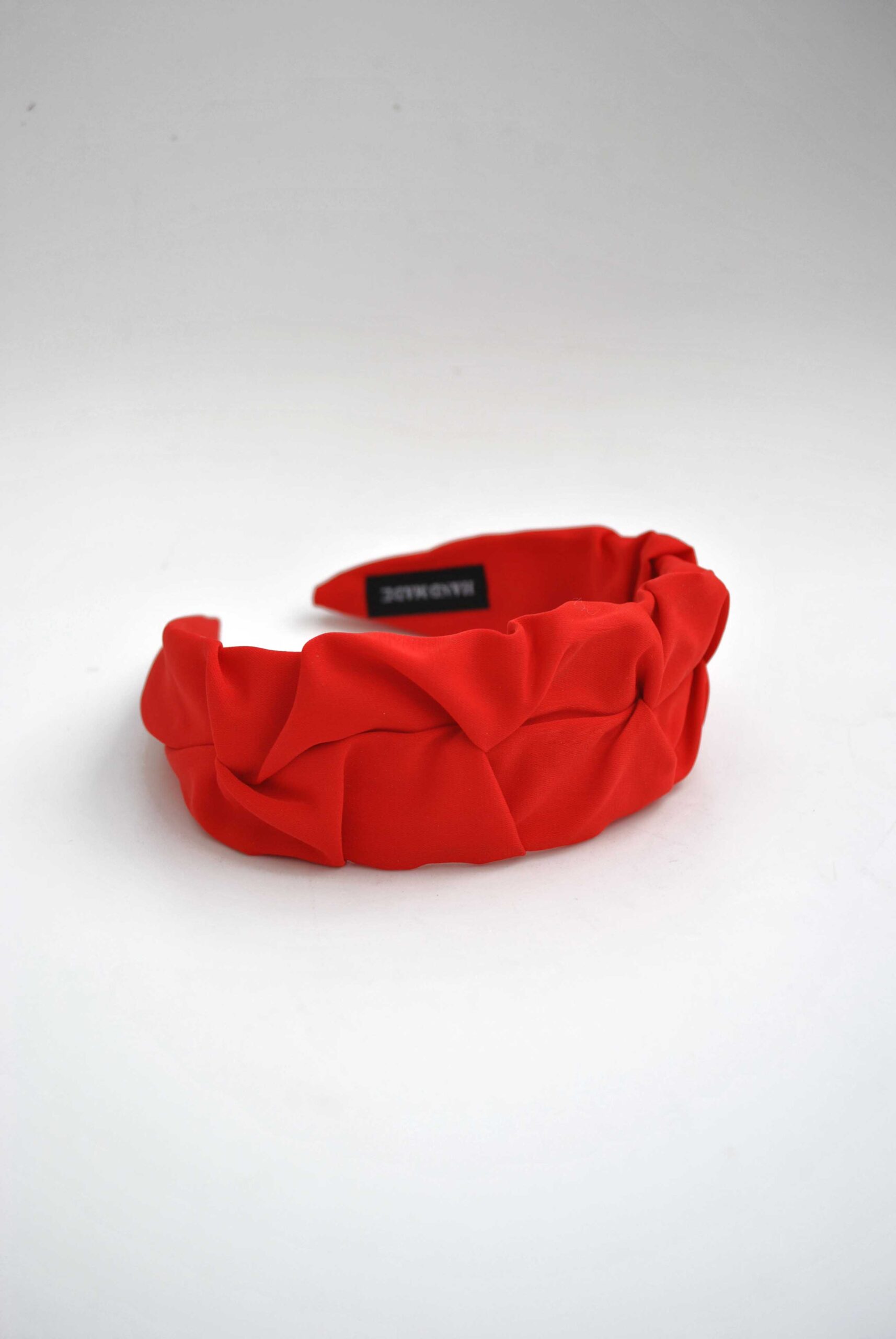 R04/5727 – Bonita diadema de fiesta o tocado rojo. Se trata de una diadema roja forrada en tela con detalles fruncidos ¡Queda espectacular!