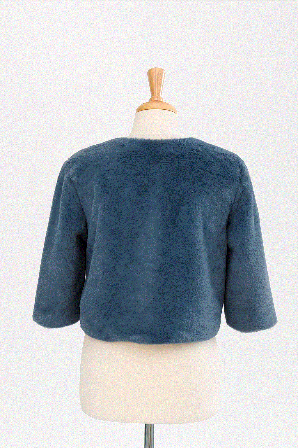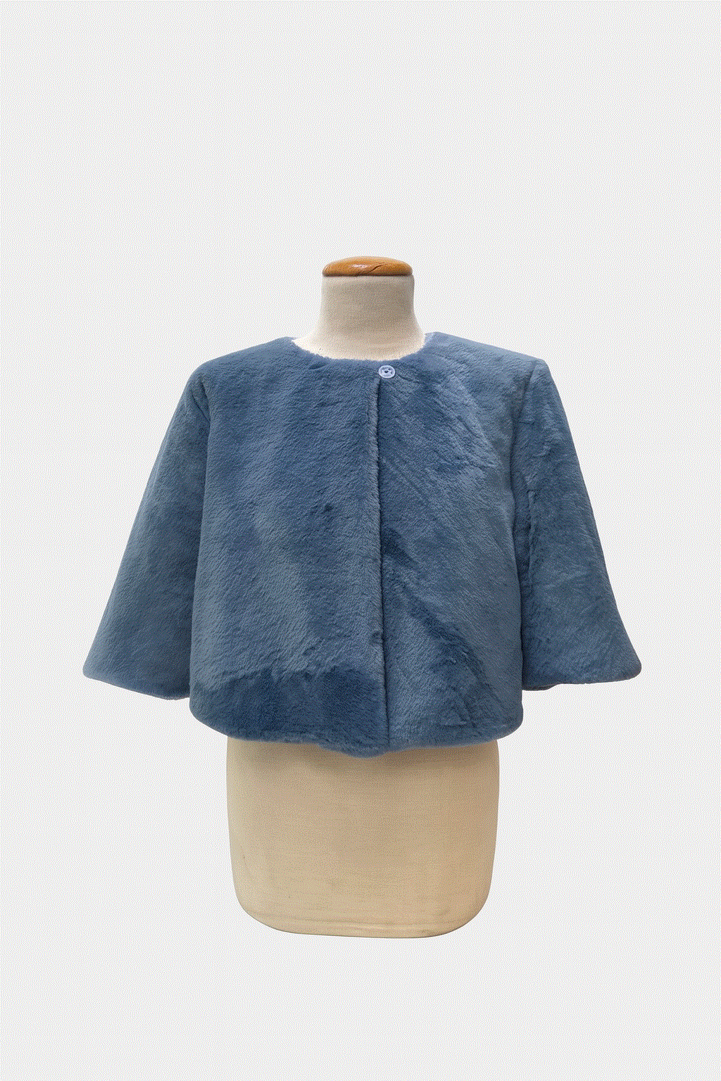 TPB195013245847 -Capa o estola de fiesta, ideal para bodas y eventos especiales, fabricada en un suave y agradable pelo sintético de color azul con escote redondo y un pequeño botón como broche. La estola consta del interior forrado, elegante, muy favorecedora y cómoda de llevar.
