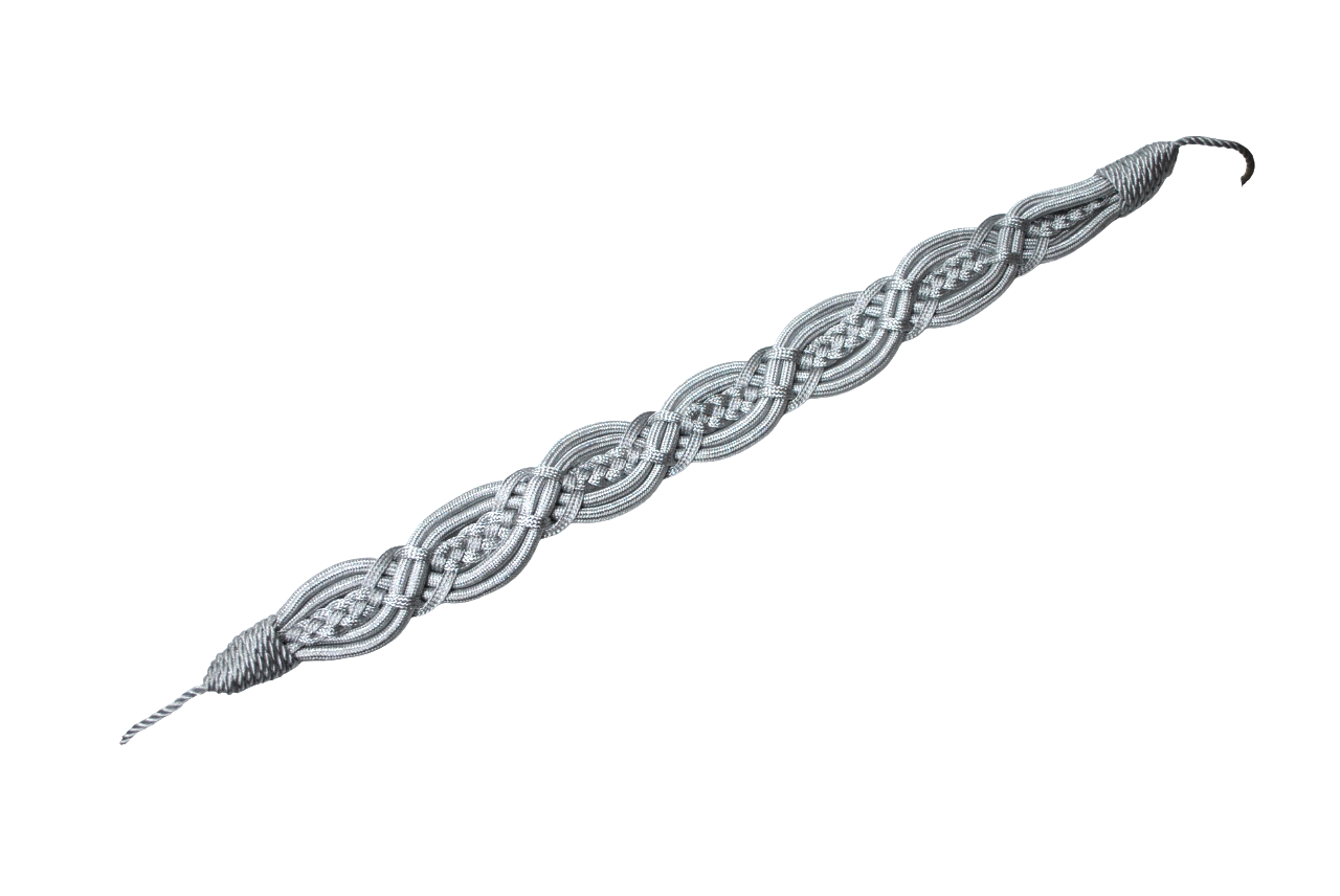 TPB09505245854 – Bonito y elegante fajín o cinturón de fiesta plateado. Se trata de un cinturón confeccionado con cordón trenzado en color plateado y remates en las puntas con pompones de flecos de seda. Es muy cómodo, llévalo atado con una lazada y, es ideal para colocarlo en cualquier falda o vestido.