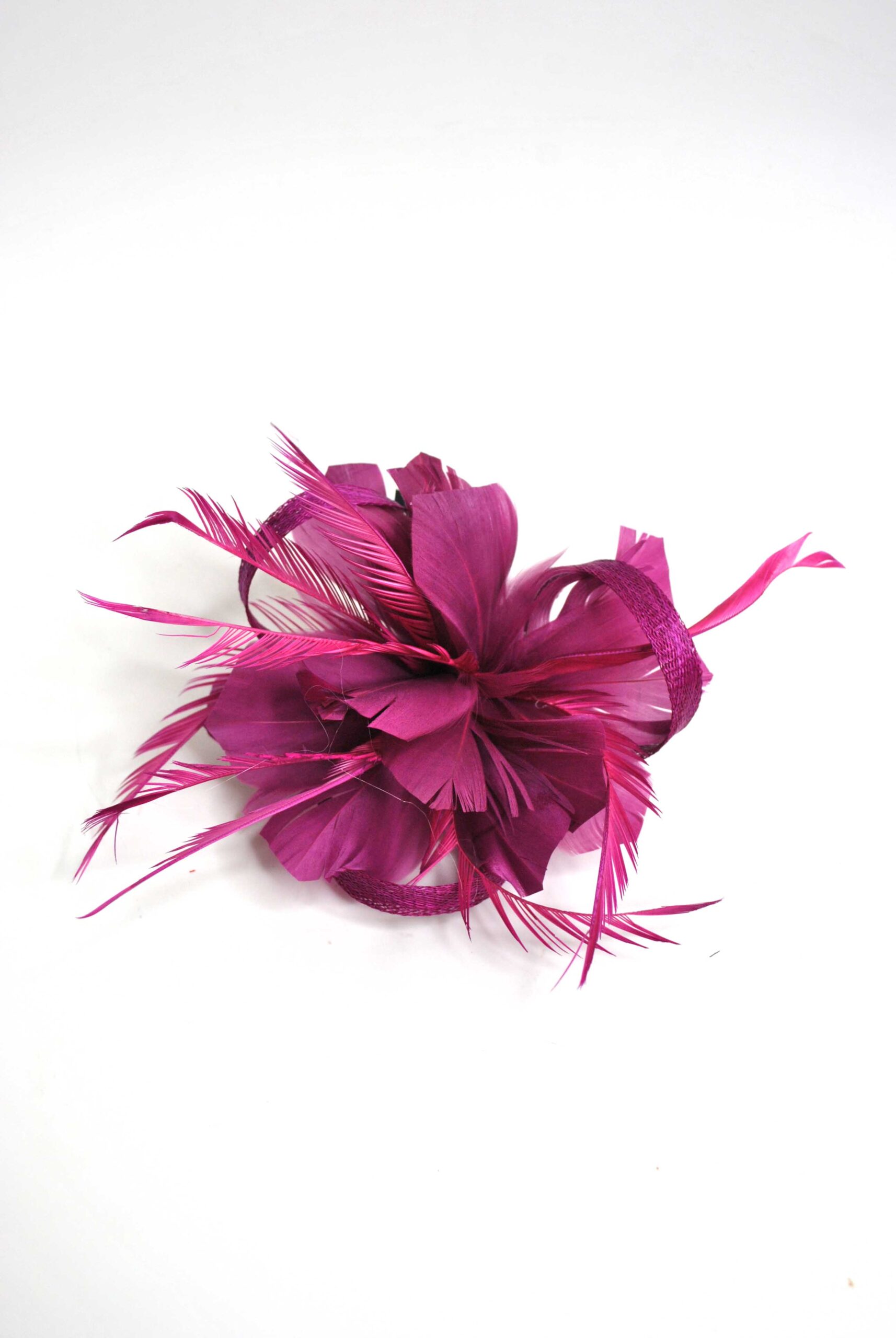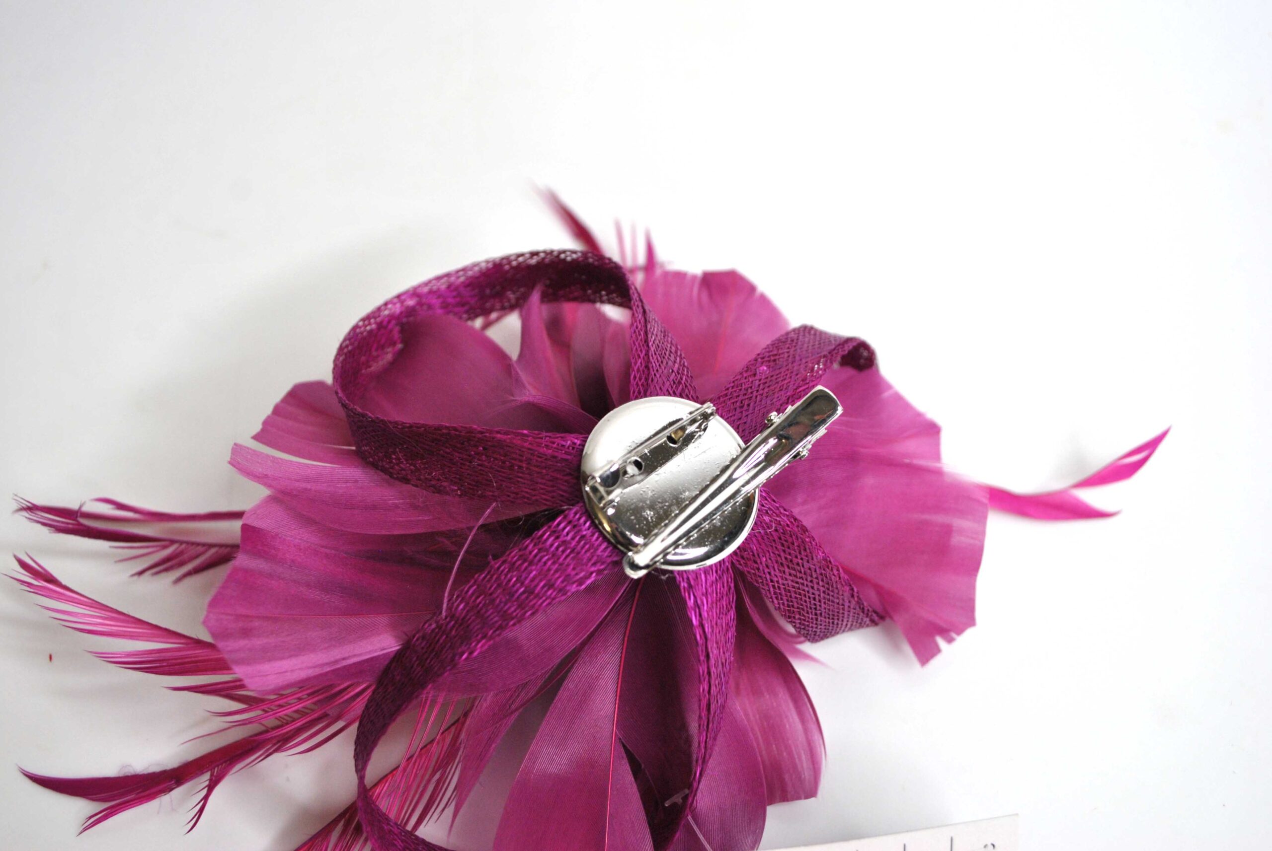 R21/4106 -Preciosa flor o tocado de pequeño tamaño, ideal para lucirlo en bodas, confeccionado en color rosa fresa, sencillo y elegante a la vez, con el diseño en forma de flor con los pétalos abiertos decorados con finas y delicadas plumitas vaporosas dando originalidad y movimiento a este precioso accesorio para su vestido de fiesta o noche. Además, lleva una pinza e imperdible para que pueda ponerlo tanto en el cabello como en una prenda de vestir a modo de broche.