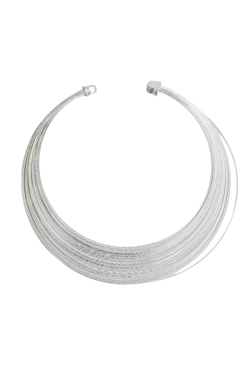 R04/5368 – Bonita gargantilla plateada de mujer. Se trata de un collar o una gargantilla fabricada en bisutería plateada mate y decorada con alambres. ¡Ideal para complementar tus outfits!
