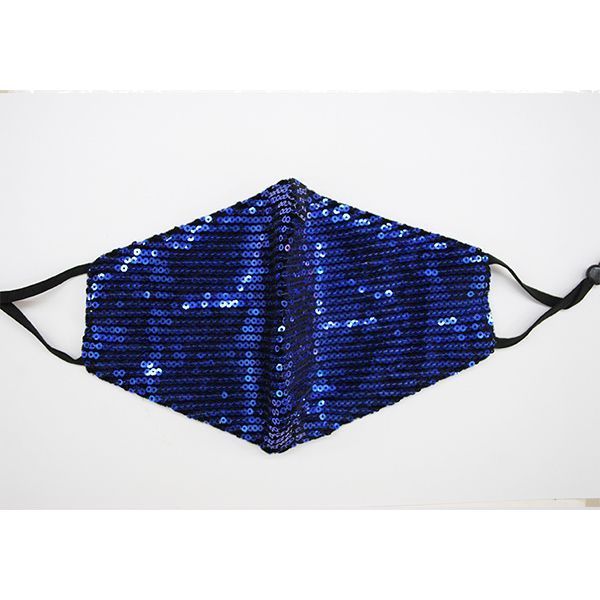 R20/3547 – Mascarilla de lentejuelas azules eléctricas fabricada con doble tejido lavables y reutilizables.