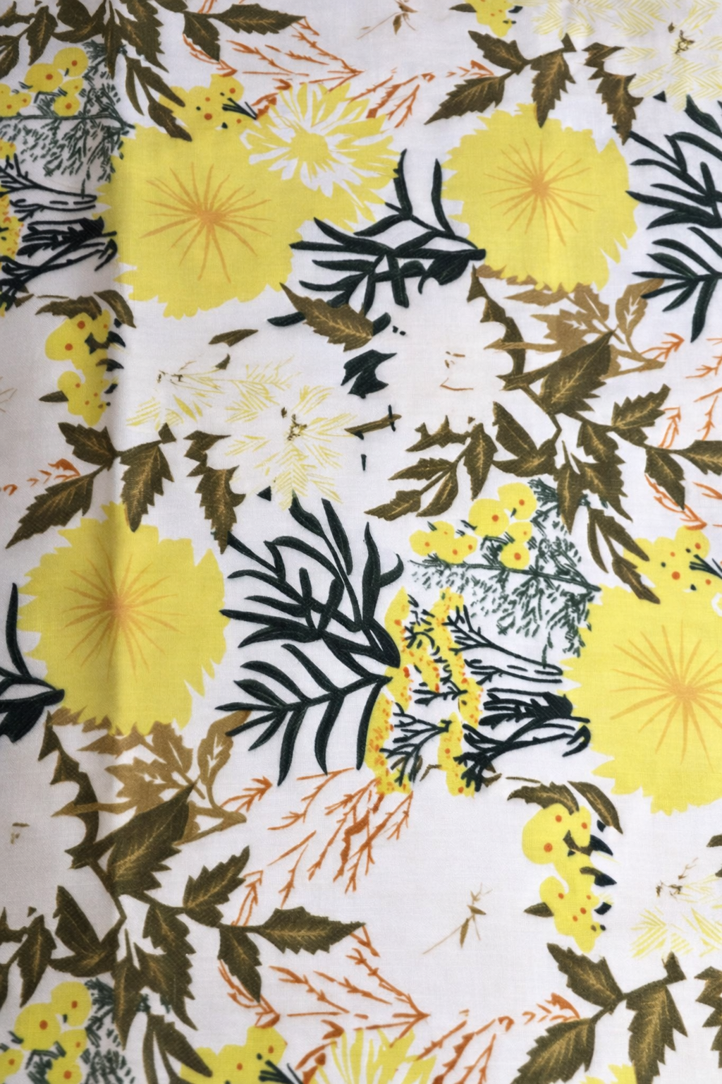 REF: 3568 – Pañuelo con estampado floral en tonos amarillos, crema y verdes, combinado con elegante marco marrón que aporta contraste y sofisticación. Su diseño lleno de flores y hojas crea un efecto fresco y alegre, ideal para dar luz a cualquier conjunto. Perfecto para llevar al cuello, sobre los hombros, en el bolso o como complemento en el cabello. Un accesorio versátil y atemporal que aporta un toque natural y femenino a tu look diario.