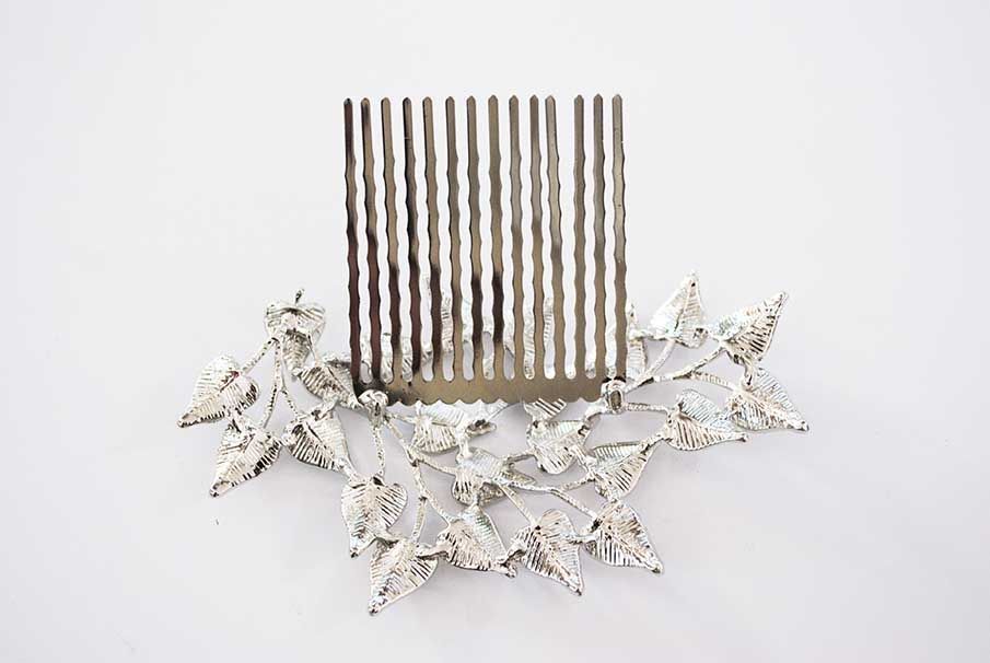 R21/3930 -Preciosa y elegante peineta plateada o tocado para pelo diseñada con ramilletes de hojas. Perfecta para cualquier recogido en aquellas bodas y eventos especiales.