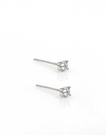 R04/5543 – Elegantes pendientes pequeños fabricados en acero inoxidable plateado y decorados con un pequeño cristal redondo blanco.