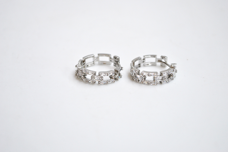 R03/5152 – Preciosos y elegantes pendientes pequeños de aro. Constan de cierre a presión y están diseñados en forma de eslabones de cadena y llamativos cristales blancos.