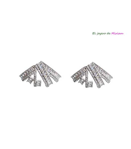 R04/5530 – Elegantes pendientes plateados de fiesta. Se tratan de unos pendientes pegados a la oreja, muy favorecedores y montados sobre bisutería plateada. Presentan decoraciones con pequeñas circonitas blancas.